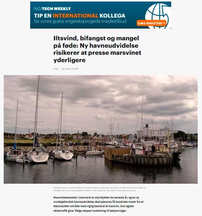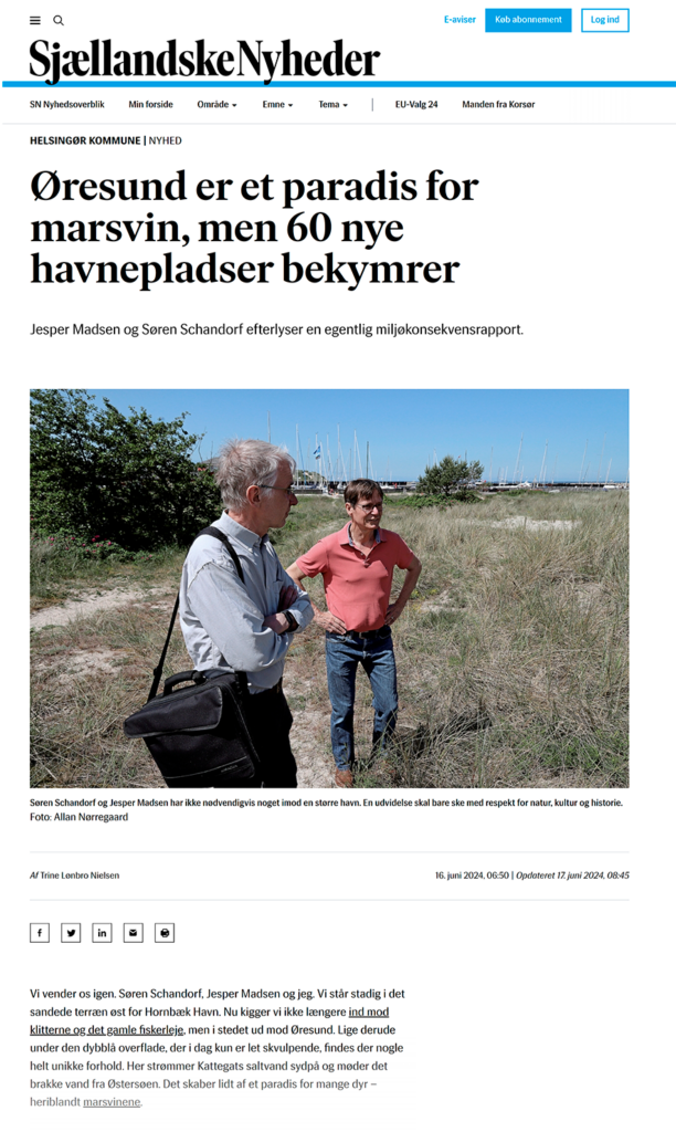 “I den nordsjællandske kystby, Hornbæk, lyder det eksempelvis i miljøvurderingen, at anlægsarbejdet og øget skibstrafik samt støjen herfra ikke kommer til at få nogen betydning for det ellers beskyttede marsvin. Ifølge forskere er det dog ukorrekt – udvidelsen vil få en stor negativ betydning for den lokale bestand af marsvin.”